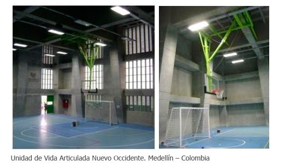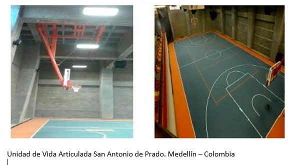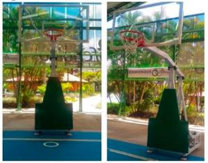 Es una estructura empotrada al piso, con una torre semiarticulada. Cuenta con tableros y aros flexibles, incluye revestimiento de seguridad cumpliendo requerimientos de calidad y garantía que caracterizan a STM.